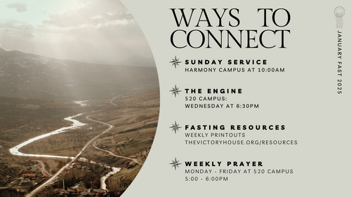 Each January we consecrate the year through 21 days of prayer and fasting. Prayerfully consider joining us and begin to prepare your hearts by asking the Lord what to set aside. If you are new to fasting or are interested in learning more, check out the Resources page below.